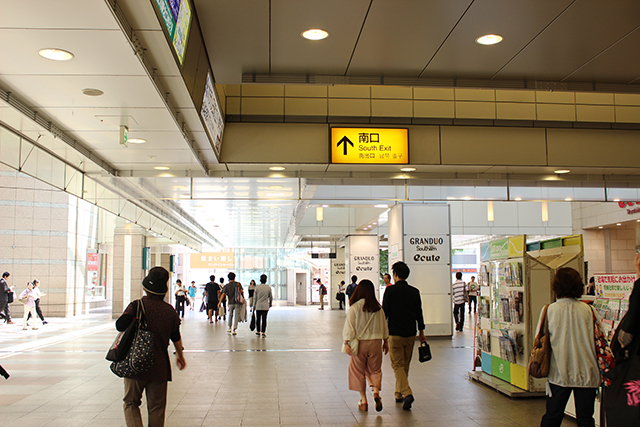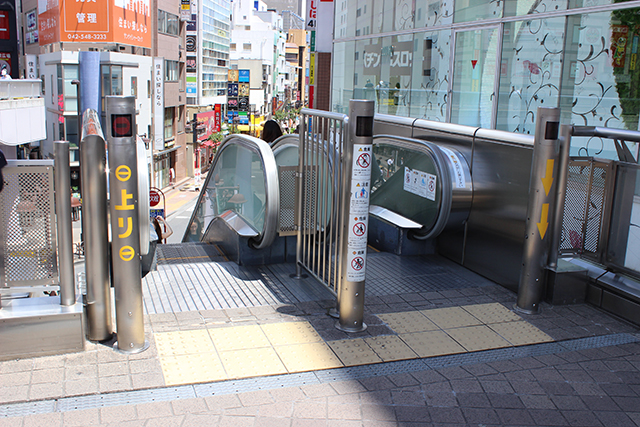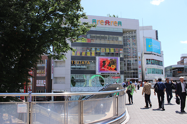 出口正面の歩道橋を「アレアレア」に向かって渡ります